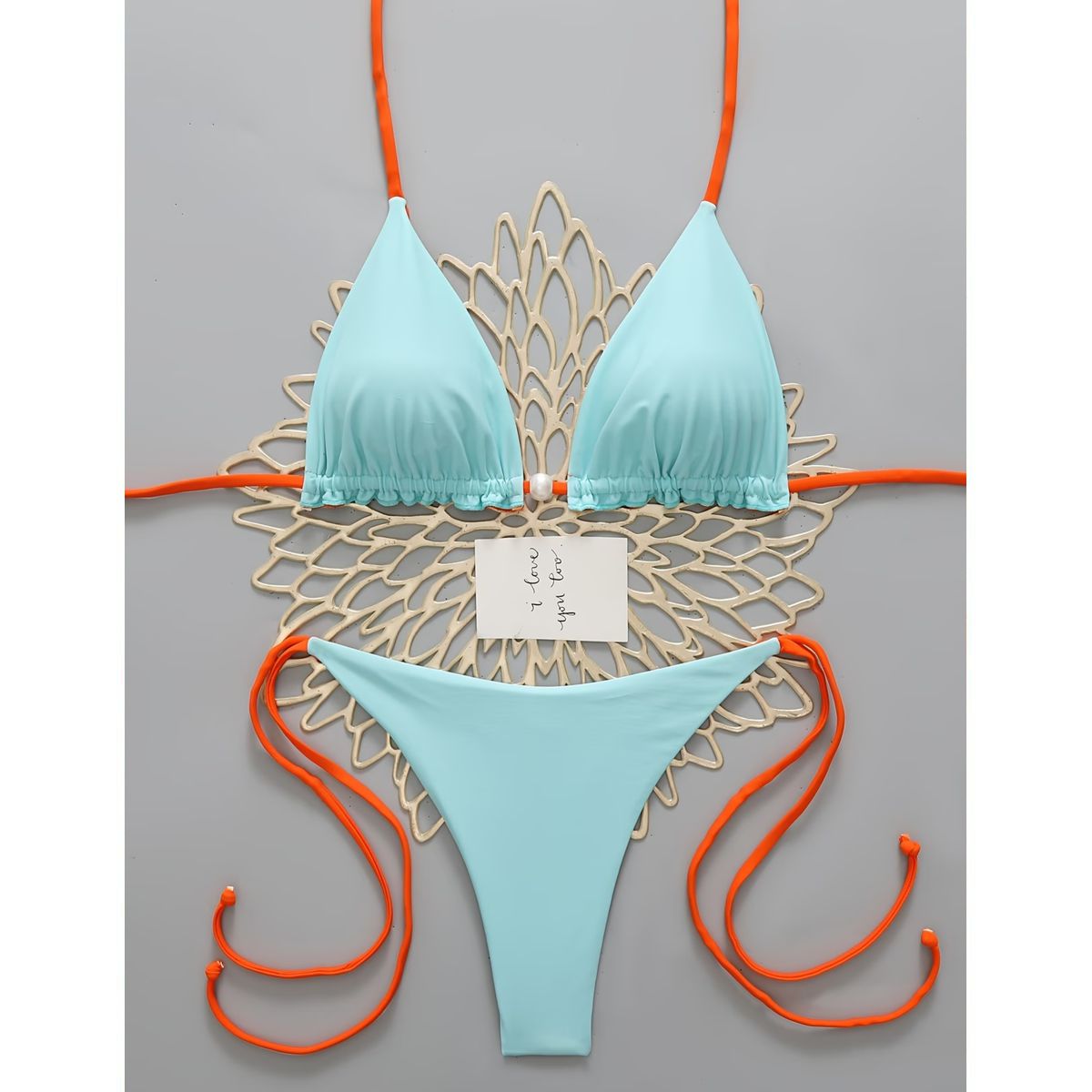 Exclusivo Bikini Celeste con Naranja
