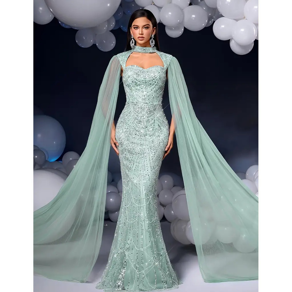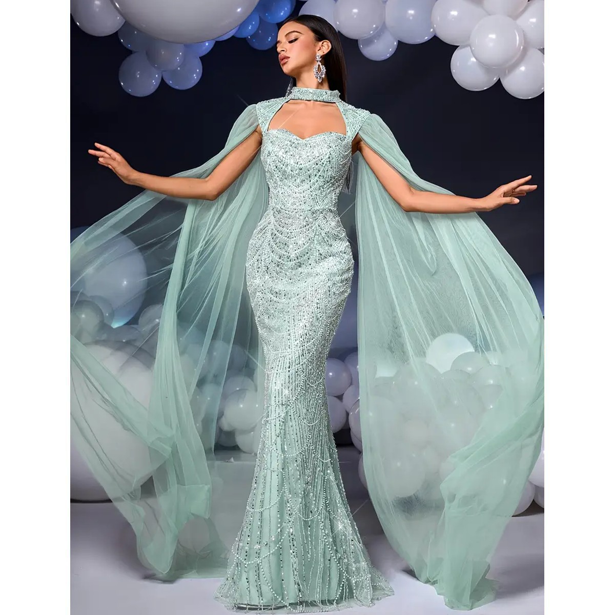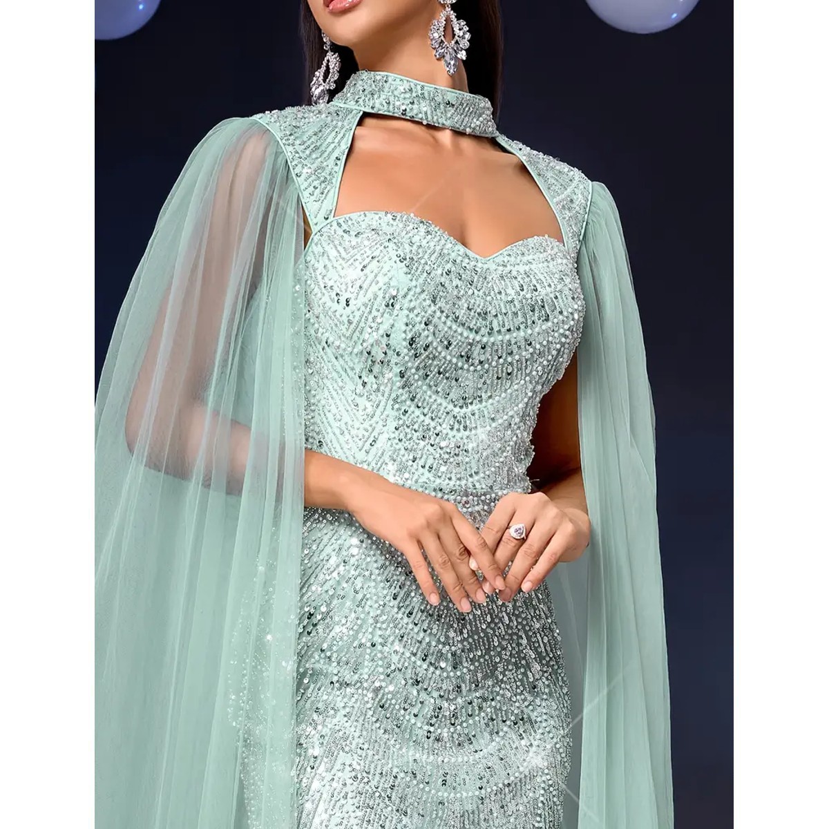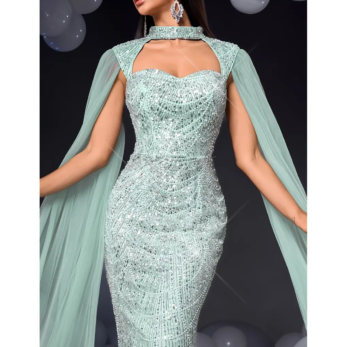 Exclusivo Vestido Celeste con Plata de Lentejuelas